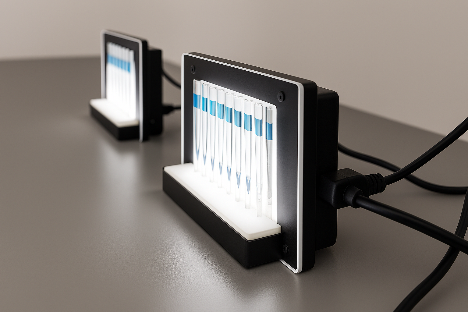 Red light source for lipoprotein analysis. This custom light source for a life science OEM improves data reliability by improving precision in wavelength and intensity.