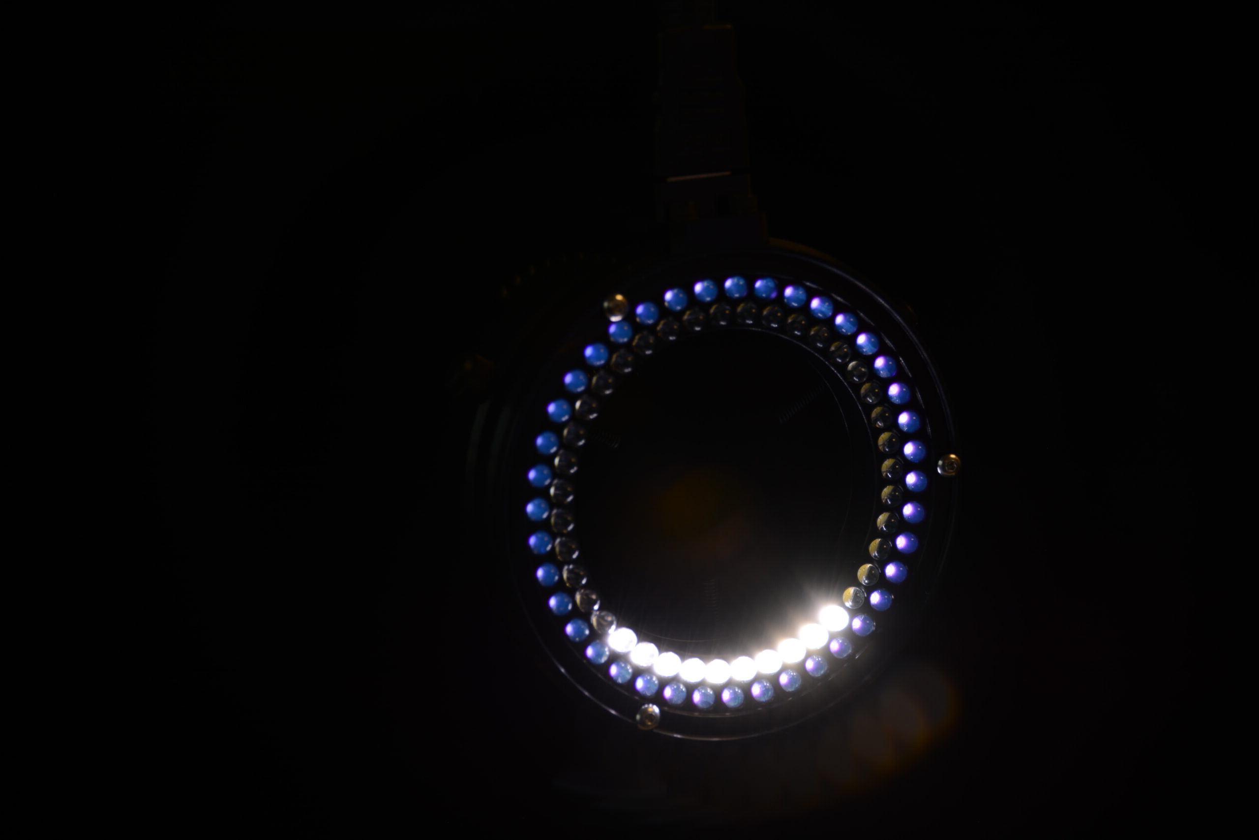 The inner and outer rings of LED’s are set at different angles to create uniform illumination across a wide range of working distances. Each ring and LED segment can be independently controlled using TechniQuips advanced eight segment LED controller.